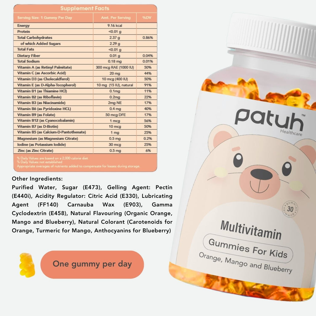 (3) Supports Eye Health: DHA, a type of Omega-3 fatty acid, is a major structural component of the retina in the eye. By including Omega-3s in our gummies, we help support your child’s eye health and vision, ensuring that their eyes receive the nutrients they need for proper development and function.